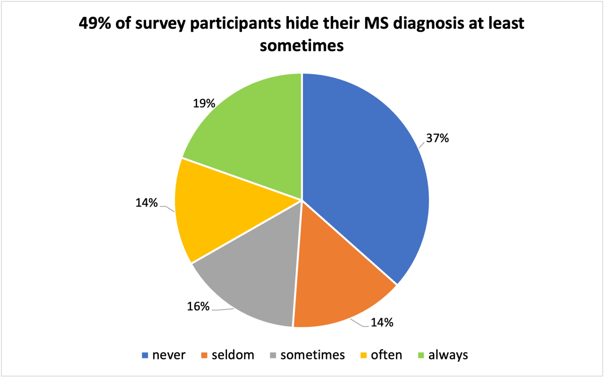 - Almost half of people with MS who answered the survey said that they sometimes, often, or always hide their diagnosis from others.