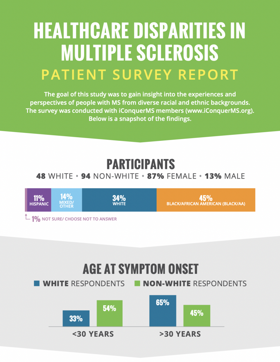 iConquerMS members completed a survey about their healthcare experiences, including the diagnostic process, treatment decisions, discussions about research, and any discrimination experienced in healthcare settings. The results were analyzed by racial and ethnic group, and the findings were incorporated in an online educational program for medical professionals.What were the goals of this study?