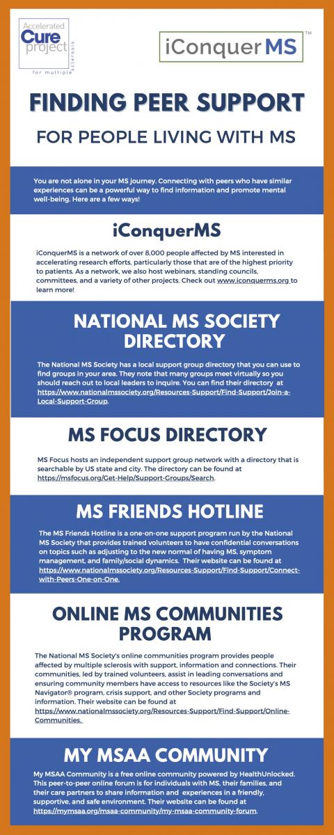 The following documents were put together by RIDE Council members and are intended to direct people affected by MS to resources that will help address some of the most common challenges we’ve discussed together as a council. Participation in the iConquerMS research network can be another great way to help contribute to generating knowledge that improves the lives of people affected by MS.